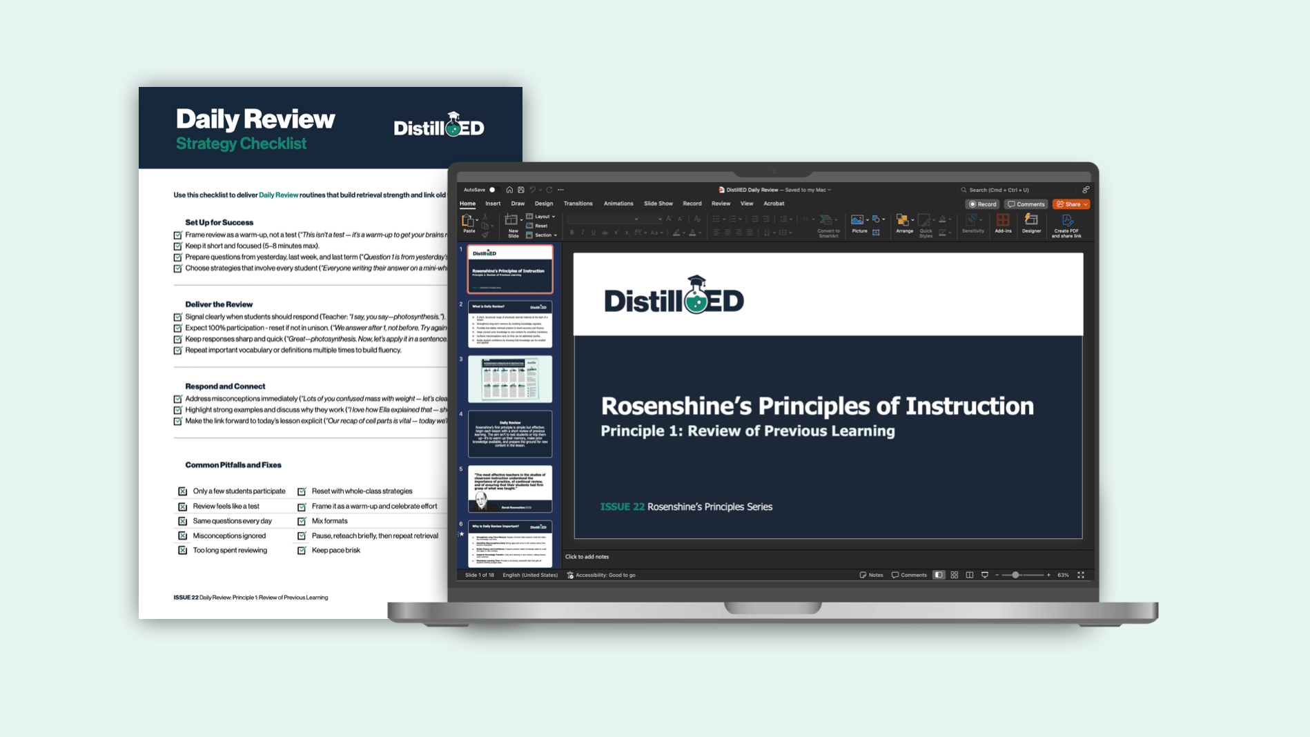 In this edition of ⚗️DistillED, we explore Daily Review—the very first of Rosenshine’s Principles of Instruction. This strategy helps students strengthen memory, connect old and new ideas, and start every lesson primed for learning.