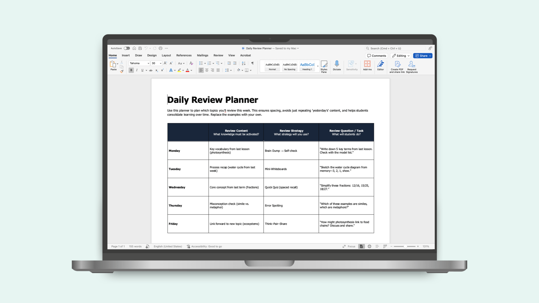To support your use of Daily Review, I’ve created a Weekly Planner Template — a simple, printable grid where you can map out what to review each day, the strategy you’ll use, and the key questions or tasks. Perfect for ensuring variety, spacing, and intentionality in your reviews.