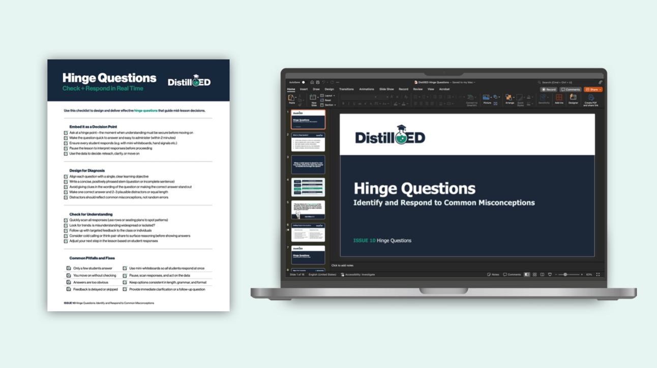 In this edition of ⚗️DistillED, we explore how to make teaching more responsive and evidence-informed by using hinge questions—a powerful mid-lesson check that helps you uncover misconceptions and guide your next instructional move.
