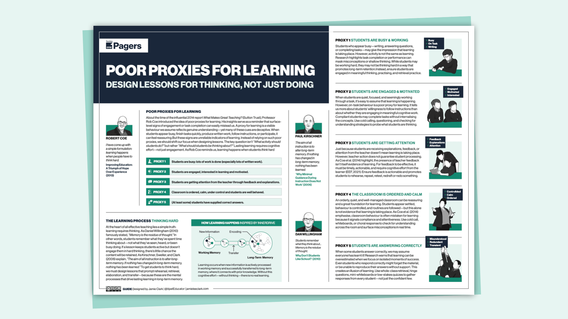 This series is inspired by the work of Professor Rob Coe, whose influential idea of poor proxies has challenged the way teachers interpret what's really happening in their classrooms. Each edition focuses on one proxy in depth — unpacking the research, and giving you practical strategies to move beyond it.
